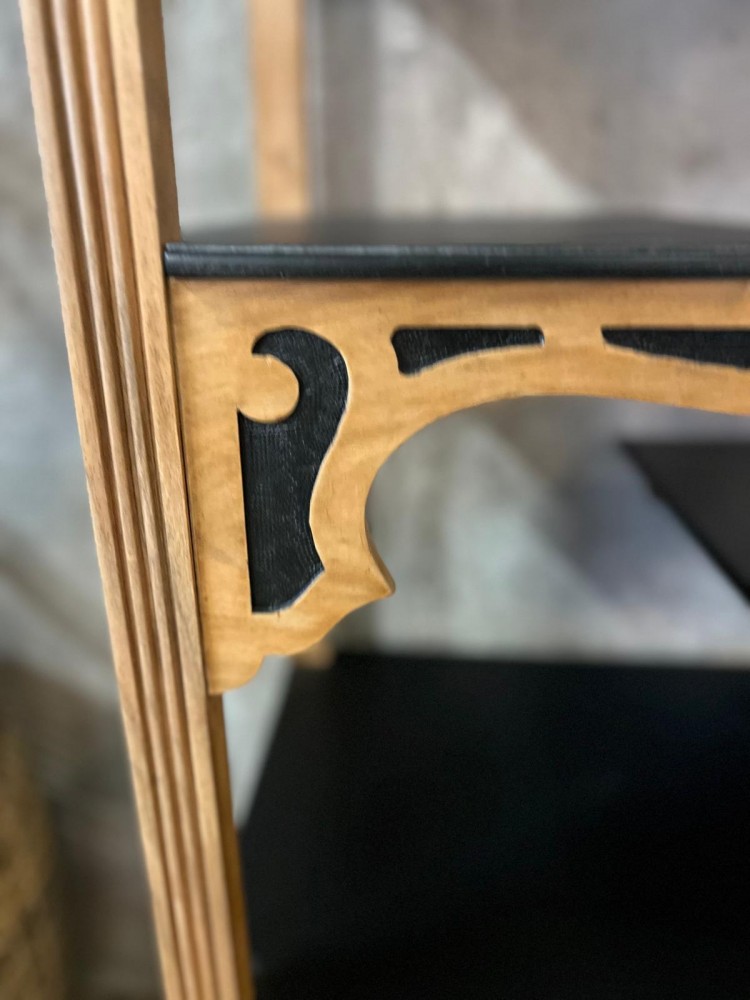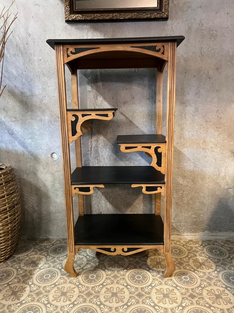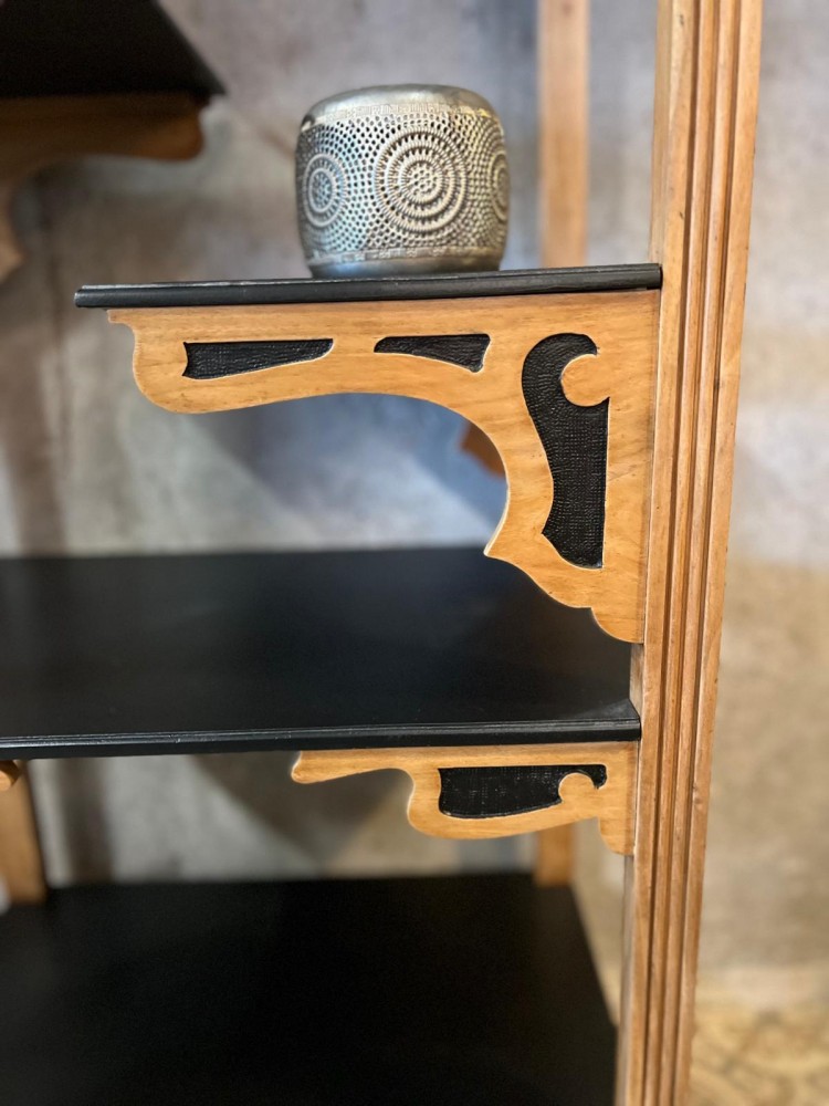 Étagère en bois et plateaux peint en noir. Style art nouveau.