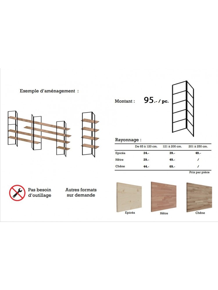 Bibliothèque modulable en échelles repliable, acier peint anthracite, plateaux disponibles en différentes essences de bois. (Voir photo)