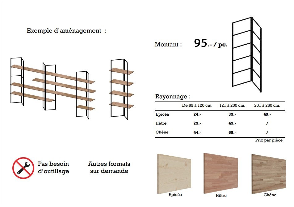 Fixation des plateaux sans vis. Prix pour une échelle : 95 CHF