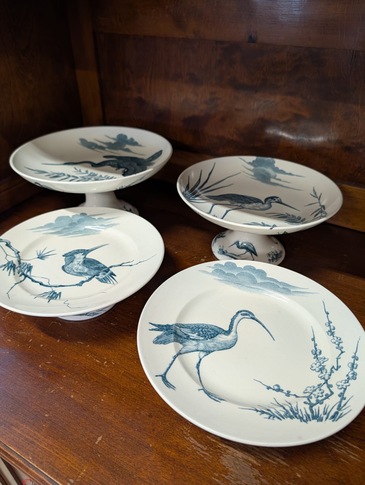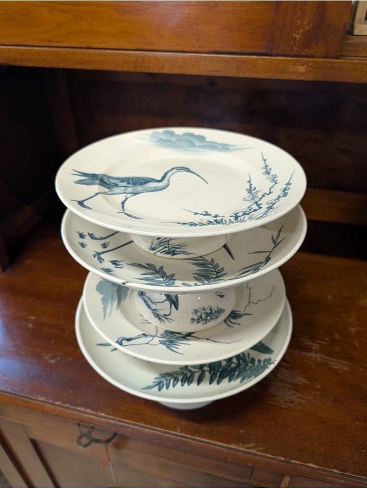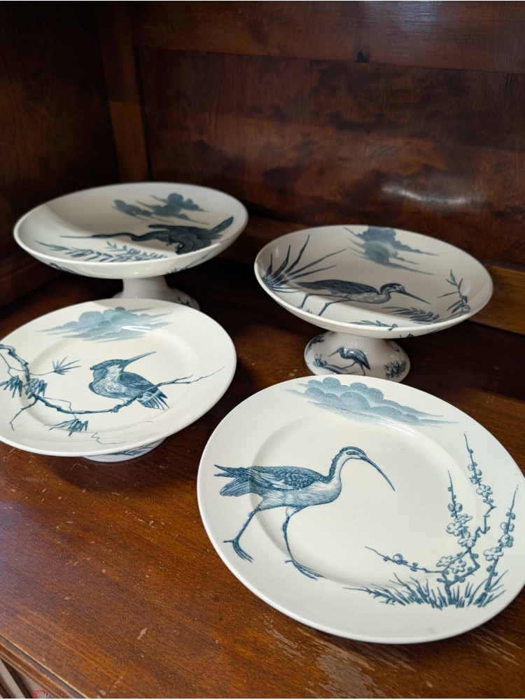 Lot de 4 plats de service en faïence, Luneville Keller & Guerin. Oiseaux peints.