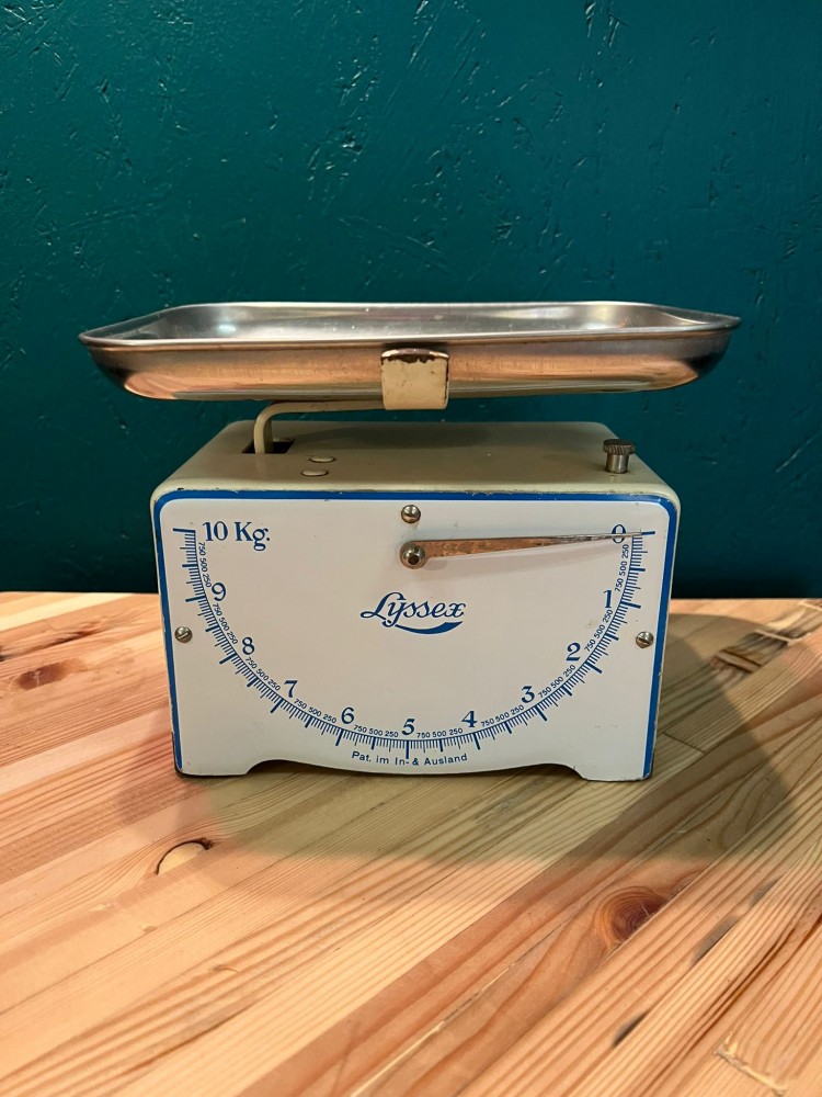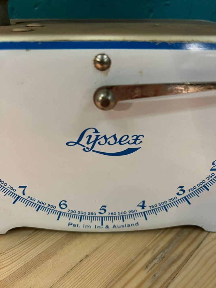 Balance ancienne Lyssex, bleue et blanche.