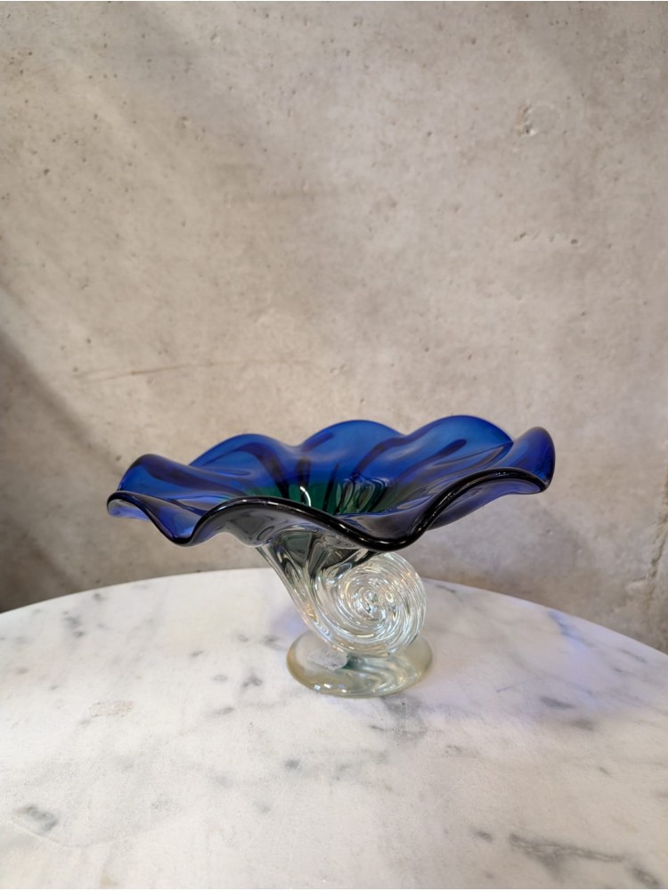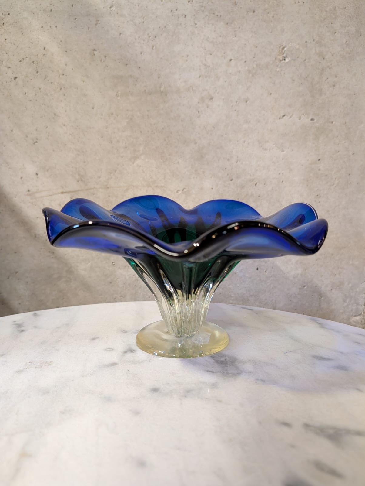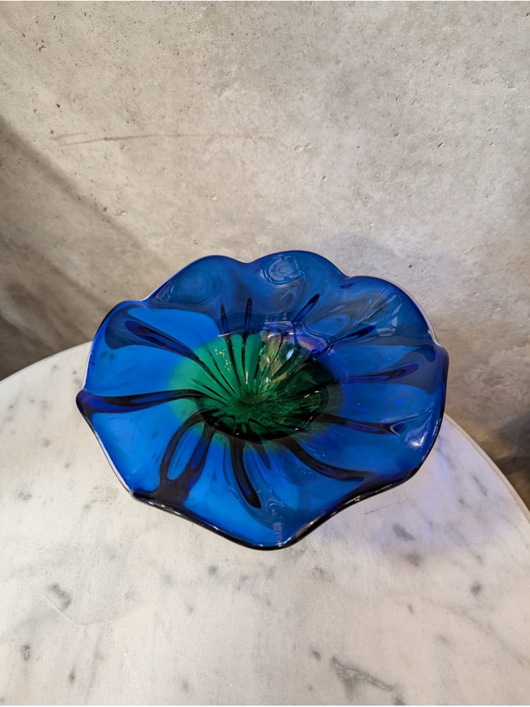 Bol en verre bleu et vert, fait à la main, République Tchèque.