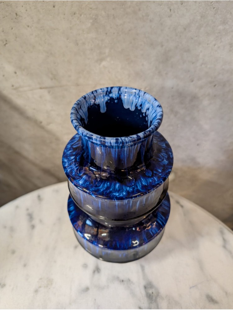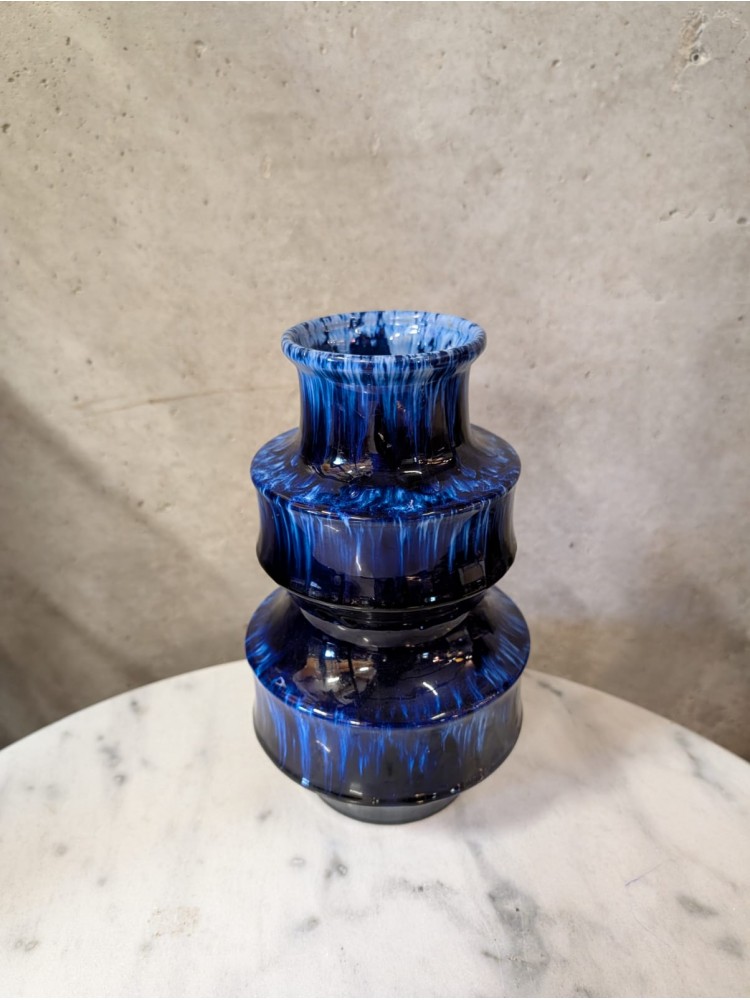 Vase pagode en céramique, Scheurich, peint en bleu et noir. Fabriqué en Allemagne, années 70.