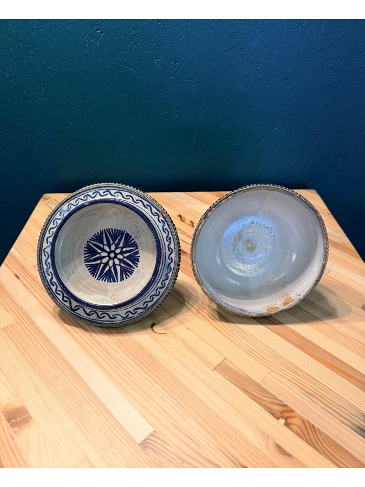 Coupe en céramique de style mauresque, avec pieds et ornements en fer.