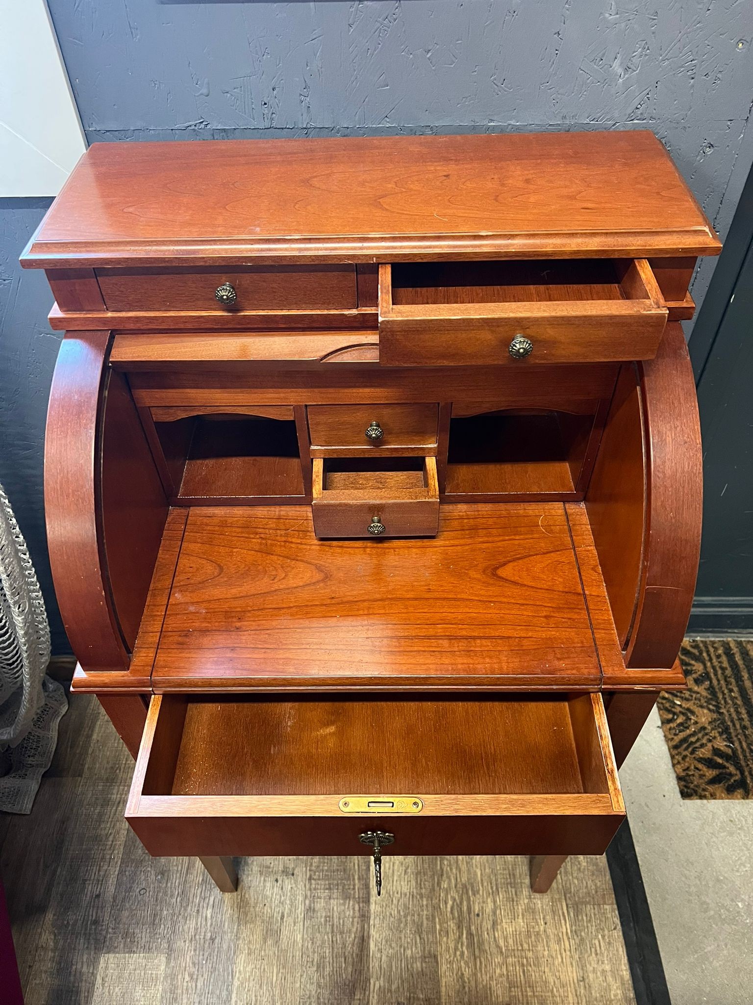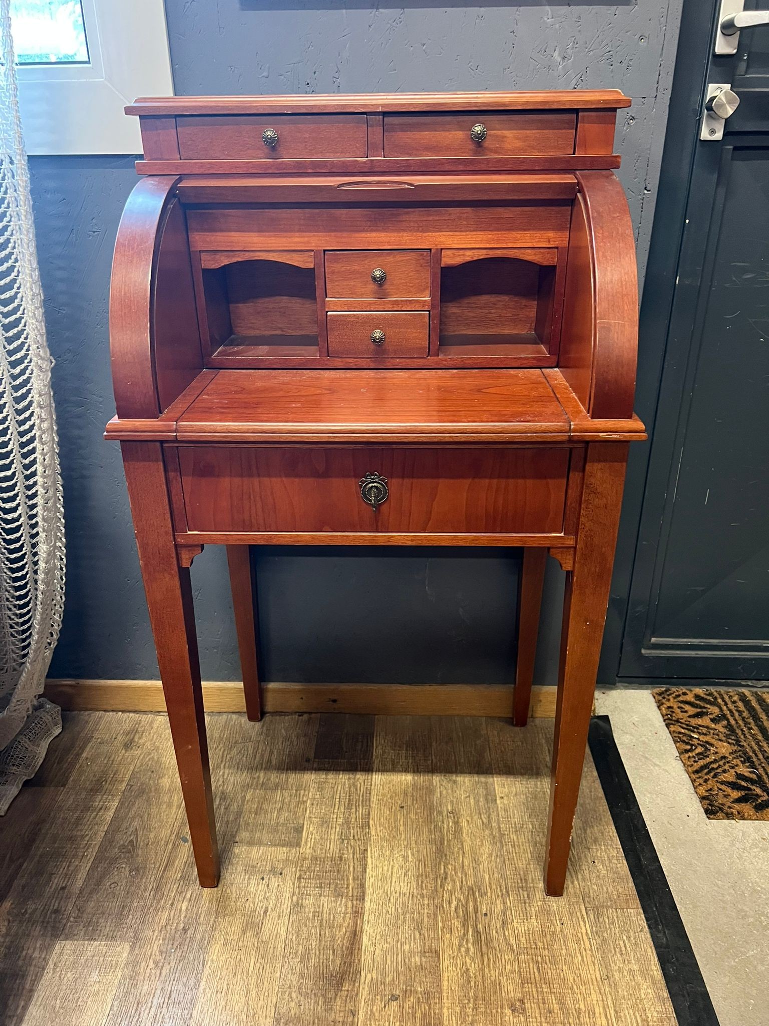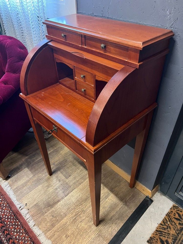 Petit secrétaire à cylindre style Louis XVI. Un grand et 4 petits tiroirs, plateau à coulis.