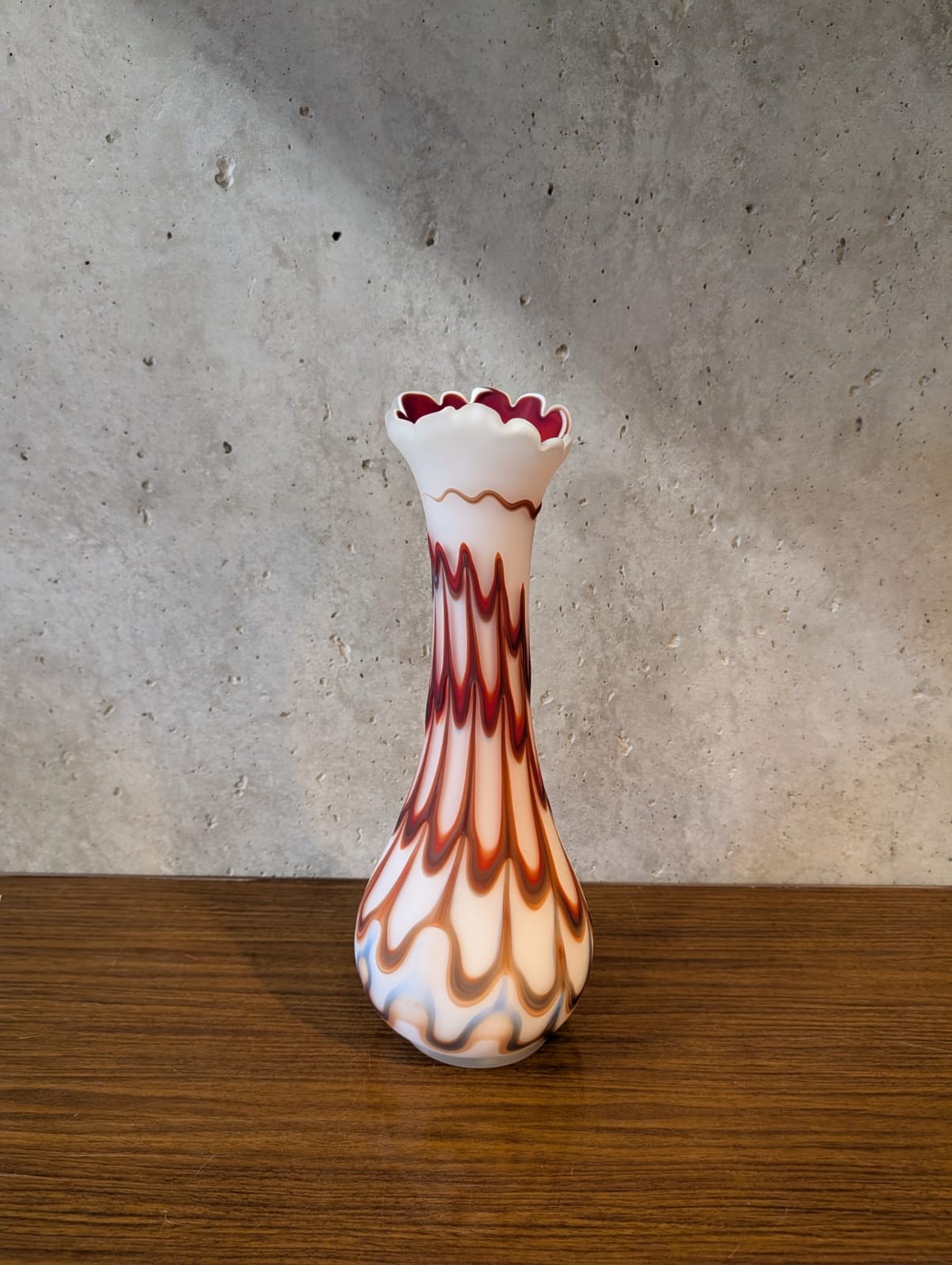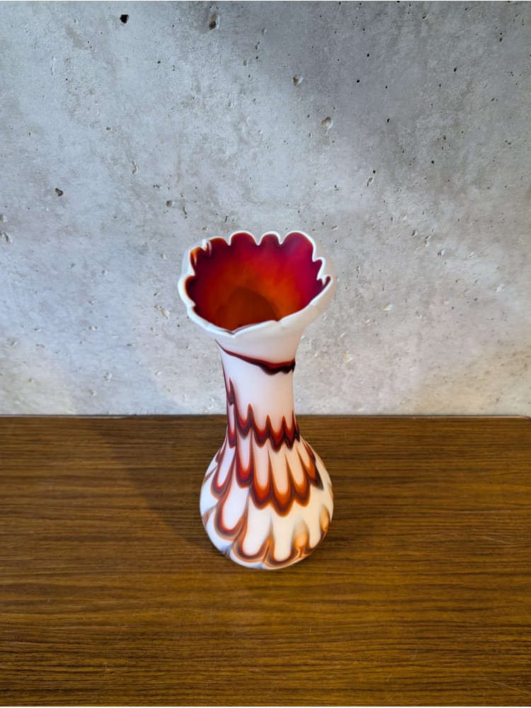 Vase en verre Murano, rouge et blanc.