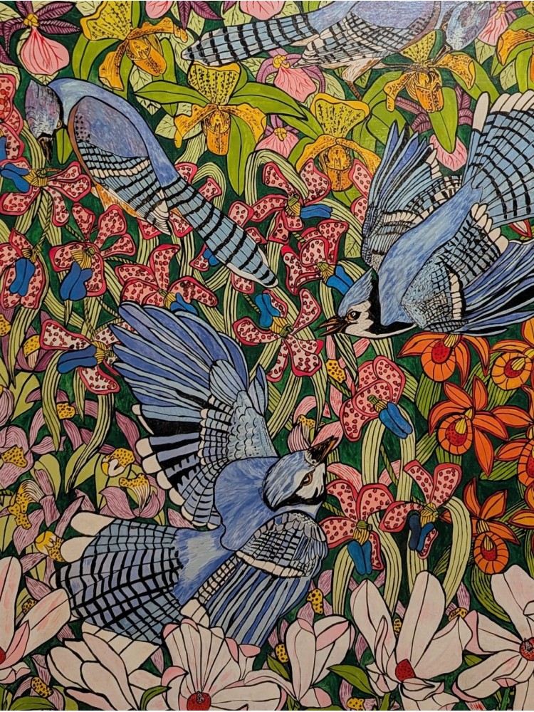 Tableau "Blue Jays" bird study 26, St Maughtin, octobre 1984.